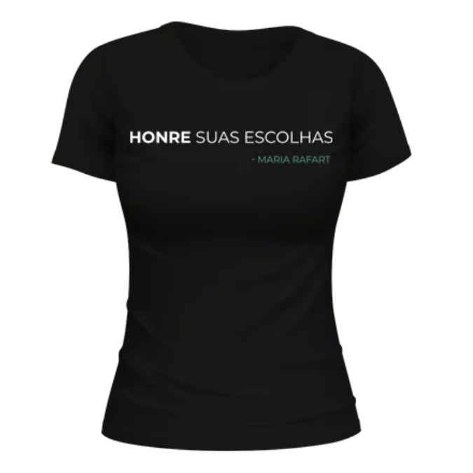 Camiseta feminina Honre Suas Escolhas une conforto, estilo e mensagem inspiradora. Este modelo baby look da coleção Maria Rafart foi criado para mulheres que buscam vestir propósito em cada detalhe.